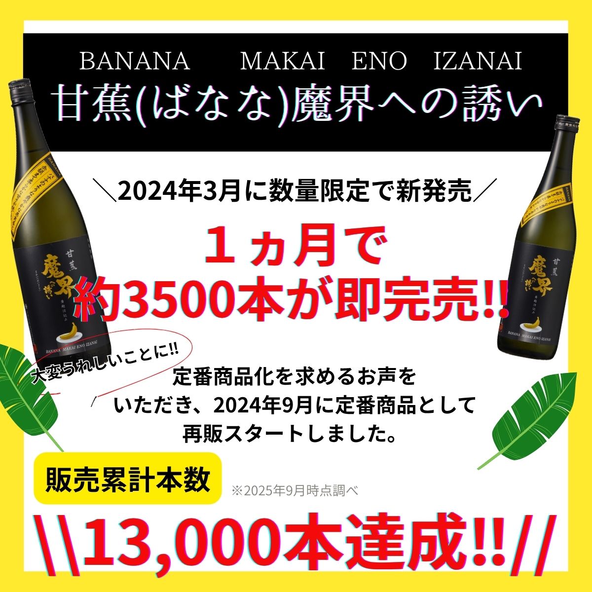 他の画像を見る バナナの香りが楽しめる芋焼酎 甘蕉(ばなな) 魔界への誘い 1800ml 【光武酒造場 公式通販】 本店特別価格 ¥ 2,948 税込 バナナの香り焼酎とは?フルーティーな味わいの魅力 詳細を見る お気に入りに登録する