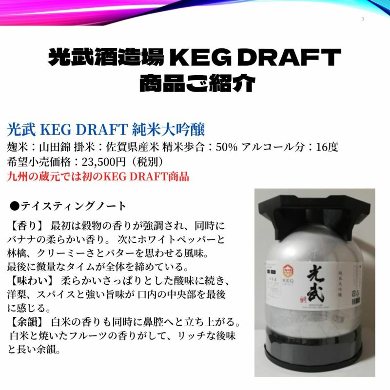 ※「KEG DRAFT」は一切加熱処理を行っていない生酒です。要冷蔵にて保管してください。
