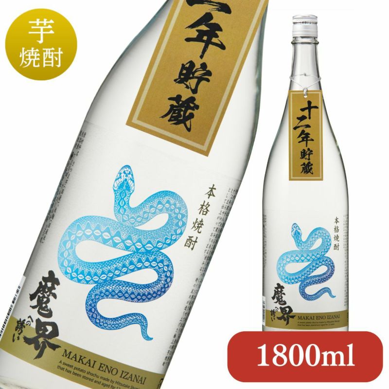 蛇は幸運を表す風水のシンボルでもあり、 皆様にとって多くの幸運が訪れますようにとの思いを込めた「十二年貯蔵魔界への誘い 蛇ラベル」は、厳選された鹿児島県産の良質な黄金千貫を使用し、10年間という大変長い貯蔵期間を経て瓶詰めしています。