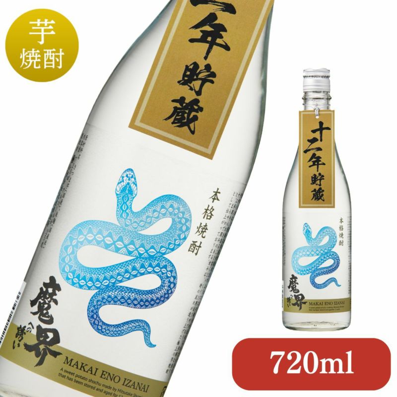 蛇は幸運を表す風水のシンボルでもあり、 皆様にとって多くの幸運が訪れますようにとの思いを込めた「十二年貯蔵魔界への誘い 蛇ラベル」は、厳選された鹿児島県産の良質な黄金千貫を使用し、12年間という大変長い貯蔵期間を経て瓶詰めしています。