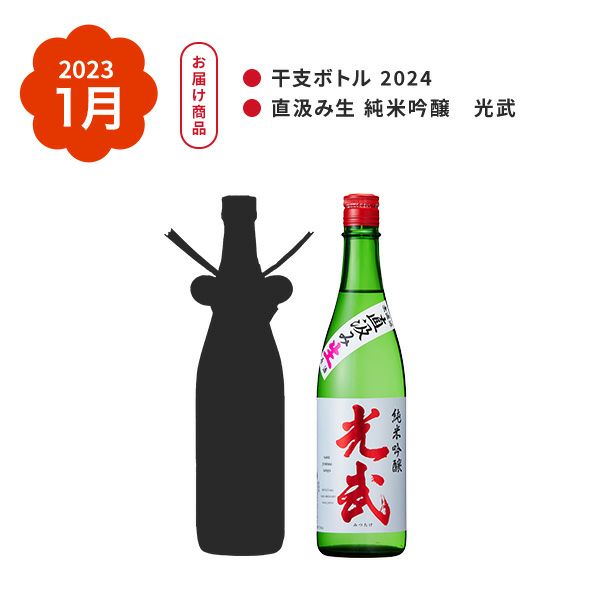 \1回のみ/お得で楽しい頒布会をお試し購入♪ ≪受付終了≫清酒 頒布会 1月分 (送料無料:クール便)( 純米吟醸 光武Platinum Style、干支ボトル2024)(720ml×2本セット)【日本酒 数量限定 季節限定酒 龍年 ドラゴン 光武酒造場/佐賀】