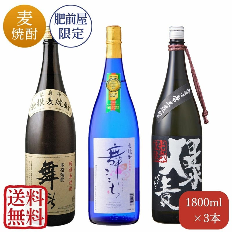 焼酎 家庭の味方 麦焼酎セット 1,800mlx3本(KMM-18-3)(送料無料)(5%FF)(舞ここちスタンダード・舞ここちブルーボトル・爆麦)【家飲み】【飲み比べ】【焼酎】【麦焼酎】【光武酒造場/佐賀県】