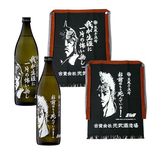 【P5倍!】ケンシロウ・ラオウ 前掛け&焼酎セット(前掛け各1枚ずつ)(焼酎900ml×各1本ずつ)(GD-824)(送料無料)【北斗の拳】【家飲み】【おうち呑み】【飲み比べ】【焼酎】【芋焼酎】【いも焼酎】【光武酒造場/佐賀県】