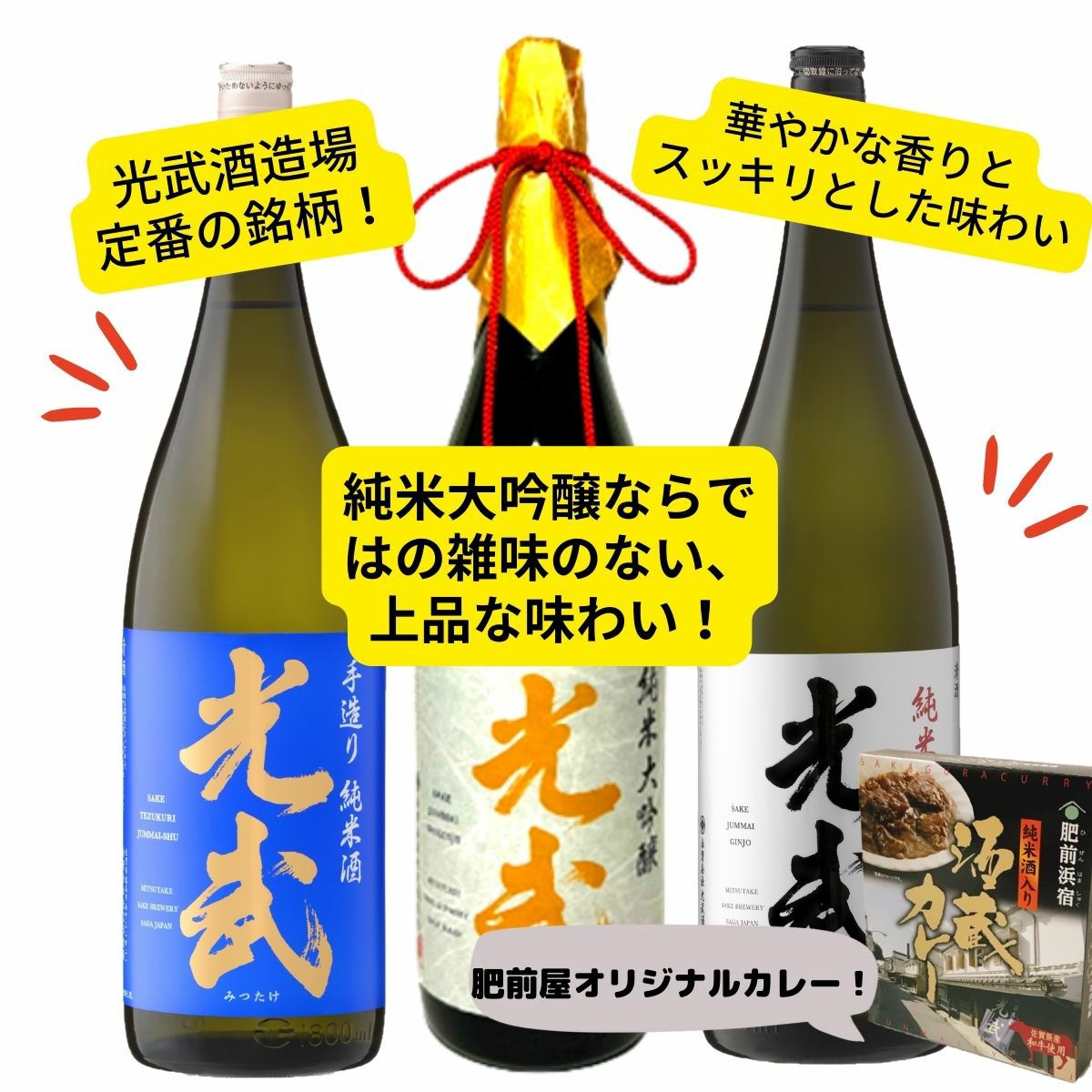 他の画像を見る 選べるお届けサイクルで美味しい日本酒が届きます (送料無料・P5倍)定期購入(日本酒)松コース(純米大吟醸 光武1800ml、純米吟醸 光武1800ml、手造り純米酒 光武1800ml、酒蔵カレー)【定期便 お得 おすすめ 日本酒 清酒 定期購入 光武酒造場 佐賀】 定期販売 1回あたり ¥ 12,600 税込 定番人気の清酒セットを定期便でお得にお届け♪ 詳細を見る お気に入りに登録する