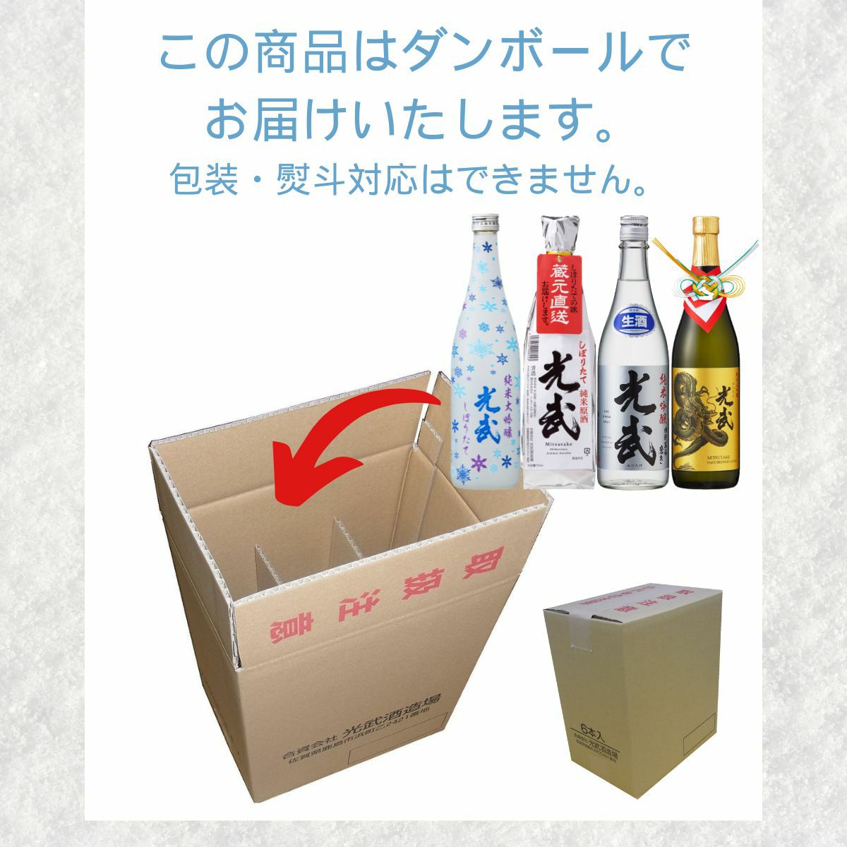 他の画像を見る ダンボールで『ボンッ!!』と豪快にお届け! ≪ご好評につき完売しました!≫(送料無料) 冬酒4種セット 720ml×4本(クール便対応)(冬光武、Platinum Style、しぼりたて純米原酒、干支ボトル2024)【清酒 日本酒 光武 限定酒 冬季 生酒 数量限定】 クール便でお届け 本店特別価格 ¥ 7,400 税込 在庫切れ 詳細を見る お気に入りに登録する