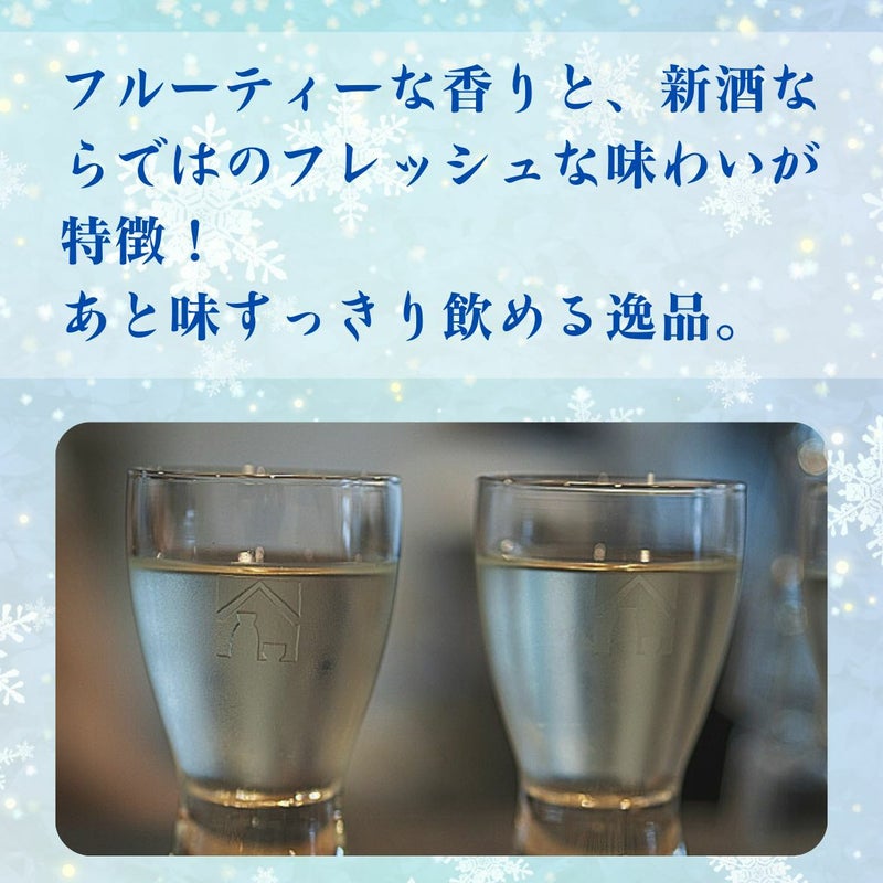 果実のようなフルーティーな香りと甘口タイプの味わいが特徴で、新酒ならではのフレッシュ感をお楽しみいただける純米大吟醸です。