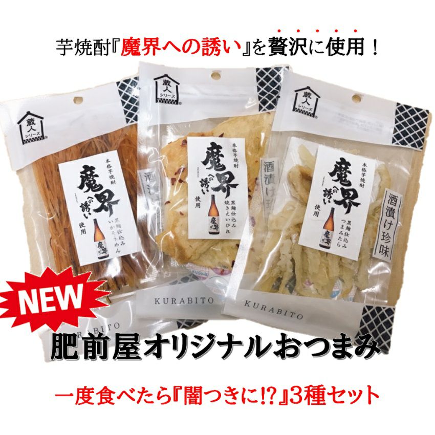 他の画像を見る 大人気!芋焼酎『魔界への誘い』を贅沢使用したおつまみが誕生!! 魔界仕立ておつまみ3種セット(えいひれ、つまみ鱈、いかそうめん)(肥前屋限定販売)【食品】【魔界への誘い】【おつまみ 乾物 オリジナル】【光武酒造場 公式通販/佐賀県】【肥前屋】 本店特別価格 ¥ 1,200 税込 お酒と同時購入で同梱発送できます! カートに入れる お気に入りに登録する