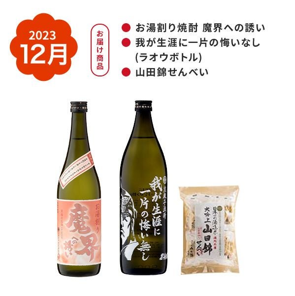 他の画像を見る \1回のみ/お得で楽しい頒布会をお試し購入♪ 焼酎 頒布会 12月分 (送料無料) (お湯割り魔界、ラオウ、山田錦せんべい)(720ml×1、900ml×1)【焼酎 芋焼酎 おつまみ いも 特別価格 北斗コラボ 我が生涯に一片の悔いなし 魔界 光武酒造場/佐賀 季節限定】 本店特別価格 ¥ 3,980 税込 販売を終了しました。 在庫切れ 詳細を見る お気に入りに登録する